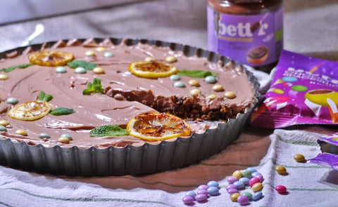 Selle juustukoogi jaoks kasutame Bett’r Hazelnut-Cacao Spreadi – 100% orgaanilist, suhkrulisandita, palmiõlivaba maitsega šokolaadi- ja iirise sarapuupähklimääret.